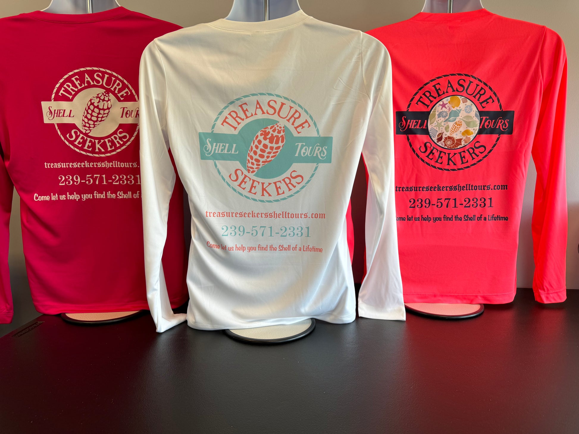 Introducing our Woman’s V-Neck Long Sleeve Shirts, priced at $38.00. These value-priced tees are not just a fashion statement; they're a symbol of your unforgettable shelling experiences with Treasure Seekers Shell Tours.